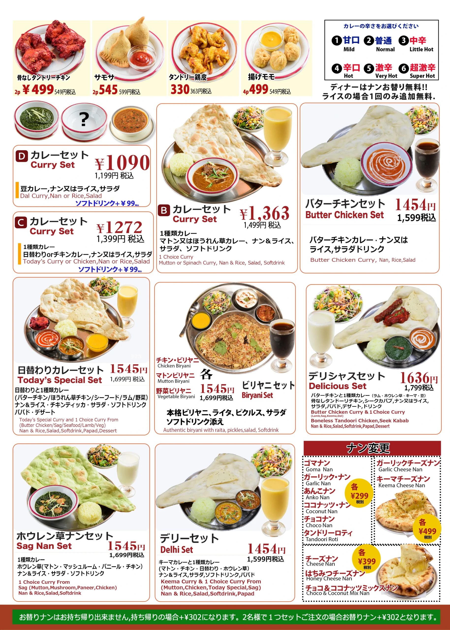 お持ち帰りメニュー